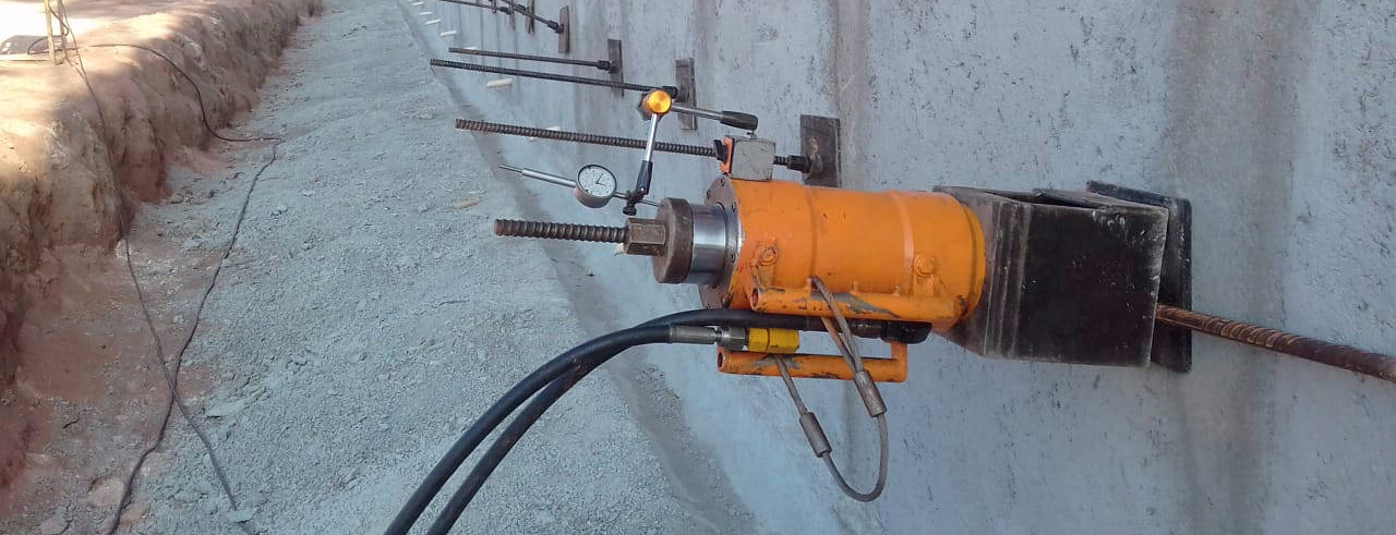O princípio básico do ensaio de arrancamento consiste em aplicar força de tração junto a cabeça do grampo, por meio de um macaco hidráulico, com cargas controladas e velocidade de incremento de carga previamente estabelecidos, até provocar o movimento de cisalhamento entre solo-grampo.
