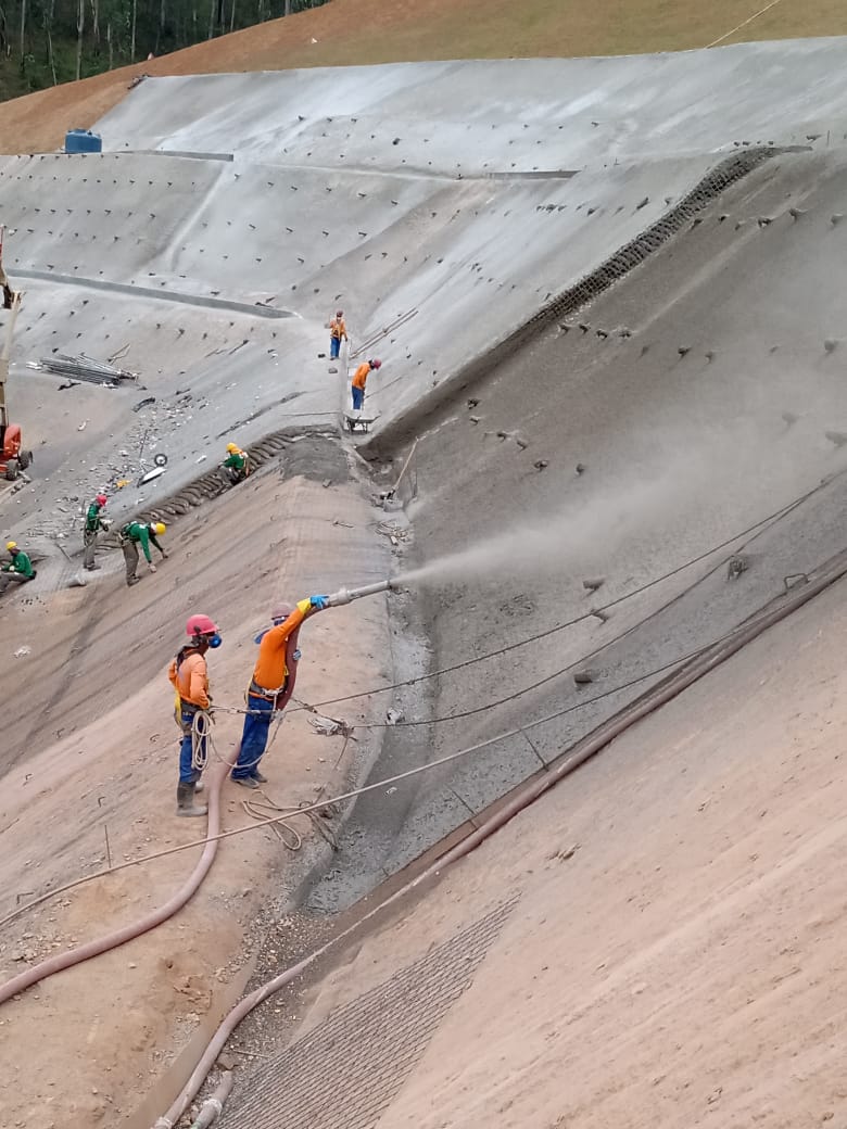 A Aplicação de Concreto Projetado executada pela Solofort é extremamente eficaz, na qual não tem função estrutural e por este motivo é uma solução a ser adotada em taludes provisórios, ou talude estáveis. Além disso, o concreto possui baixa resistência a tração, por isso, geralmente, são instaladas tela eletrosoldadas de aço CA-60 para prevenir rupturas devidos da movimentação do concreto.